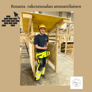 ”Miten sä pärjäät kaikkien miesten keskellä?”, kysyi äiti, kun Rosa ilmoitti haluavansa amikseen rakennusalan perustutkintoa suorittamaan. Rosan ysiluokan keskiarvolla olisi päässyt helposti myös lukioon, mutta Rosa päätti valita toisin. Kaksoistutkinnon suorittaminen jäi korona-ajan haasteiden takia, mutta rakennusalan opinnot jatkuivat jopa niin menestyksekkäästi, että Rosa päätyi Taitaja-kilpailun semifinaaleihin. ”Saa itse tehdä ja nähdä oman kädenjälkensä”, motivoi Rosaa. Loppukeväästä Erasmus-vaihtoon Saksaan kahdeksi kuukaudeksi ja tutkinnon jälkeen jatko-opintoihin AMK insinööriksi. Rosalla on selkeä suunnitelma tulevaisuuden varalle. Esikuvana on insinöörinä työskentelevä isä. Tulevalla talon rakennusalan opiskelijalla on luonnollisesti haaveena rakentaa joku päivä oma pikku torppa. Voimaa hennossa tytössä tuntuu olevan vaikka muille jakaa. ”Isojen elementtien siirto on joskus raskasta, mutta lihasmassa on vahvistunut työtä tekemällä ja salilla treenatessa”. Äitikin on huomannut tyttären alan hyödyt. Äitikin nykyään pyytää tekemään kodin ja mökin korjaushommia: ”Tulee hommat tehtyä, kun pistää Rosan töihin”.